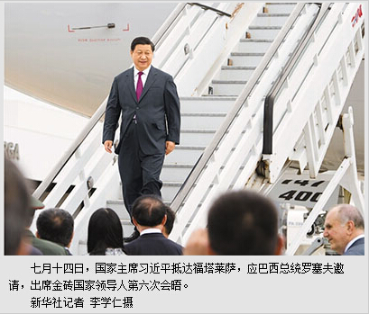 本报巴西福塔莱萨7月14日电 (记者杜尚泽、丁刚)7月14日,国家主席习近平抵达福塔莱萨,应巴西总统罗塞夫邀请,出席金砖国家领导人第六次会晤。