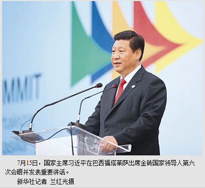 很高兴在美丽的海港城市福塔莱萨同大家会晤。感谢罗塞夫总统和巴西政府为今天会晤所作的周到安排。欢迎莫迪总理出席金砖国家领导人会晤。祝贺巴西举办了一届成功精彩的世界杯足球赛。
