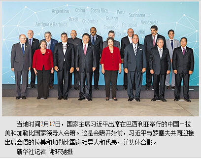 拉美和加勒比国家领导人纷纷表示,今天,我们本着团结合作的精神相聚在一起,共同规划合作未来,揭开拉中关系和南南合作新篇章。拉中有着传统友好关系,双方合作平等互利,潜力巨大。中国是拉美和加勒比国家重要合作伙伴,中国的发展是拉美和加勒比国家的重要机遇。拉美和加勒比国家具有丰富自然和人力资源,都在推进改革发展,希望借鉴中国的成功经验,促进共同、可持续发展。拉美和加勒比国家高度赞赏习近平就加强中拉合作提出的重要倡议和举措,支持成立中拉论坛,双方要加强政策协调和产业对接,扩大贸易和投资规模,加强能矿、基础设施建设、科技、金融等领域合作,提高经济竞争力,拉方欢迎中国企业投资,愿意同中方加强人文、教育、人才培训等领域交流。双方要加强对话合作,携手促进国际关系民主化,推动建立更加公正合理的国际经济金融秩序。