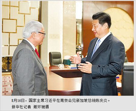 本报南京8月16日电 (记者杜尚泽、王伟健)国家主席习近平16日上午在南京会见新加坡总统陈庆炎,对他专程前来出席南京青奥会表示热烈欢迎。陈庆炎表示,新加坡是上届青奥会主办国,深知青奥会可以给各国青年带来希望和机会。相信在中方出色组织下,南京青奥会一定会取得成功。