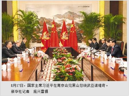 本报南京8月17日电 (记者赵京安、杜尚泽)国家主席习近平17日在南京会见黑山总统武亚诺维奇,对他专程前来出席南京青奥会表示热烈欢迎。