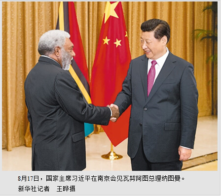 本报南京8月17日电 (记者杜尚泽、申琳)国家主席习近平17日在南京会见瓦努阿图总理纳图曼,对他专程前来出席南京青奥会表示热烈欢迎。