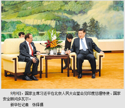 本报北京9月9日电 (记者李伟红)国家主席习近平9日在人民大会堂会见了印度总理特使、国家安全顾问多瓦尔。