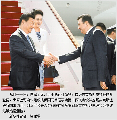 本报杜尚别9月11日电 (记者杜尚泽、黄文帝)国家主席习近平11日抵达杜尚别,应塔吉克斯坦总统拉赫蒙邀请,出席上海合作组织成员国元首理事会第十四次会议并对塔吉克斯坦进行国事访问。