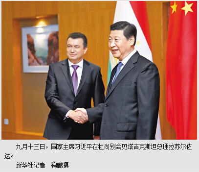 本报杜尚别9月13日电 (记者杜尚泽、林雪丹)国家主席习近平13日在杜尚别会见塔吉克斯坦总理拉苏尔佐达。