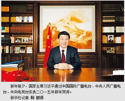 新华社北京12月31日电  新年前夕,国家主席习近平通过中国国际广播电台、中央人民广播电台、中央电视台,发表了二〇一五年新年贺词。全文如下: