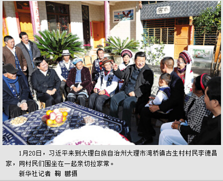 1月19日至21日,习近平在云南省委书记李纪恒、代省长陈豪陪同下,来到昭通、大理、昆明等地,看望鲁甸地震灾区干部群众,深入企业、工地、乡村考察,就灾后恢复重建和经济社会发展情况进行调研。