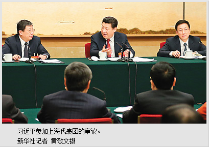 据新华社北京3月5日电 中共中央总书记、国家主席、中央军委主席习近平5日下午在参加他所在的十二届全国人大三次会议上海代表团审议时强调,上海要按照全面建成小康社会、全面深化改革、全面依法治国、全面从严治党的战略布局,凝心聚力,奋发有为,继续当好全国改革开放排头兵、创新发展先行者,为全国改革发展稳定大局作出更大贡献。
