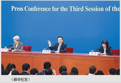 李克强:中国经济进入新常态,我们经济增速调整为今年预期增长7%左右,看起来增速是调低了,实际上实现这个目标并不容易,因为中国的经济总量增大了,已经超过了十万亿美元。如果按7%增长,那每年就要增加一个中等国家的经济规模。在这个过程中,如果我们能够注重质量、效益,促使中国经济由中低端向中高端升级,那就可以在较长时期保持中国经济中高速增长。我们实现现代化就有了坚实的基础,对世界也是巨大的贡献。