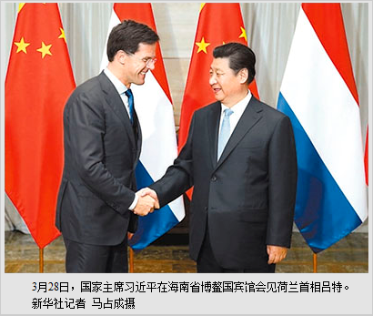 本报海南博鳌3月28日电 (记者陈伟光、杜尚泽)国家主席习近平28日在海南省博鳌国宾馆会见荷兰首相吕特。