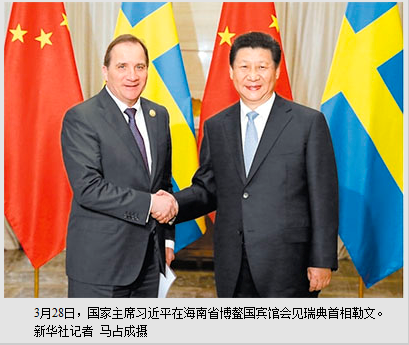 习近平欢迎勒文来华出席博鳌亚洲论坛年会并启动中瑞建交65周年系列活动。习近平指出,这次访问是你就任首相后首次亚洲之行,体现了你本人和瑞典对中国的重视和友好情谊。瑞典是最早同新中国建交的西方国家。65年来,中瑞关系由小到大,从弱变强,取得令人瞩目的成绩。