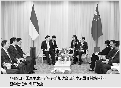新华社雅加达4月22日电 (记者周檬、徐剑梅)国家主席习近平22日在雅加达会见印度尼西亚总统佐科。