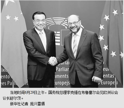 本报布鲁塞尔6月29日电  (记者吕鸿、吴刚、张杰)国务院总理李克强当地时间29日上午在布鲁塞尔会见欧洲议会议长舒尔茨。