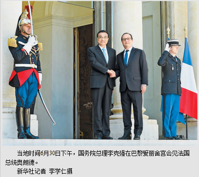 本报巴黎6月30日电 (记者吕鸿、李永群、王远)国务院总理李克强当地时间30日下午在巴黎爱丽舍宫会见法国总统奥朗德。