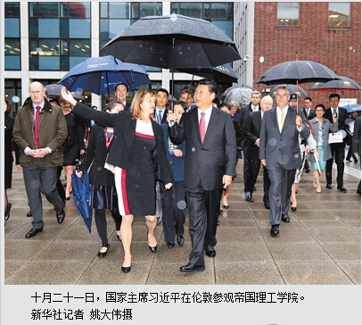 本报伦敦10月21日电 (记者杜尚泽、李应齐)当地时间21日,国家主席习近平在伦敦参观帝国理工学院。