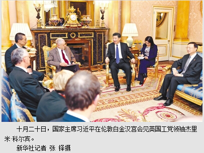 本报伦敦10月20日电 (记者杜尚泽、李应齐)当地时间20日,国家主席习近平在下榻的白金汉宫会见英国工党领袖科尔宾。