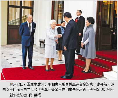 习近平和彭丽媛同英国女王伊丽莎白二世夫妇话别