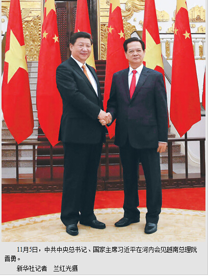 本报河内11月5日电 (记者杜尚泽、雷达)5日,中共中央总书记、国家主席习近平在河内会见越南总理阮晋勇。