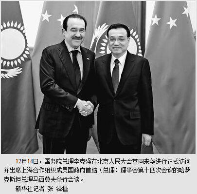 李克强同哈萨克斯坦总理马西莫夫举行会谈时强调