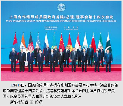 李克强表示,上合组织成立14年来,走过了不平凡的历程,始终以平等互信、合作共赢为宗旨,为增进成员国福祉、维护地区稳定作出了重要贡献。今年7月,习近平主席出席乌法峰会,同各国领导人通过了《上海合作组织至2025年发展战略》,规划了中长期合作路线图,上合组织扩员进程正式启动,自身发展进入新阶段。