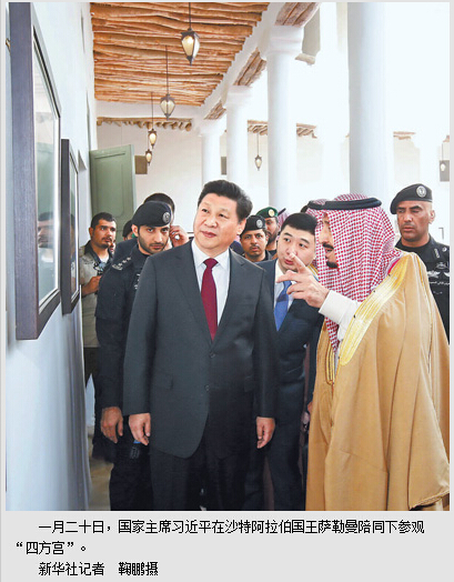 本报利雅得1月20日电 (记者杜尚泽、黄培昭)20日,国家主席习近平在沙特阿拉伯国王萨勒曼陪同下参观“四方宫”。
