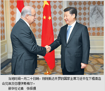 本报开罗1月20日电 (记者杜尚泽、刘水明)当地时间20日晚,刚刚抵达开罗的国家主席习近平在下榻酒店会见埃及总理伊斯梅尔。