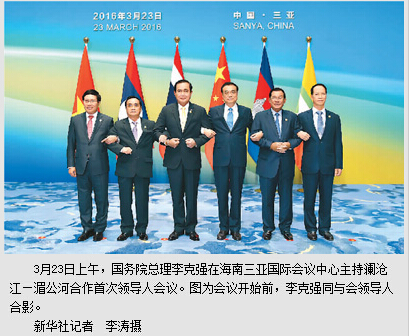 本报三亚3月23日电 (记者赵明昊)国务院总理李克强23日上午在海南三亚国际会议中心主持澜沧江-湄公河合作首次领导人会议,同与会国家领导人围绕“同饮一江水,命运紧相连”的会议主题,共商澜湄合作发展大计。泰国总理巴育、柬埔寨首相洪森、老挝总理通邢、缅甸副总统赛茂康和越南副总理范平明出席。