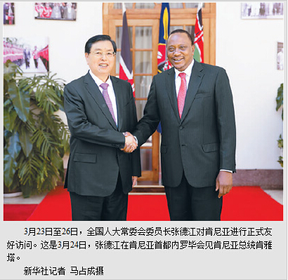 张德江对肯尼亚进行正式友好访问