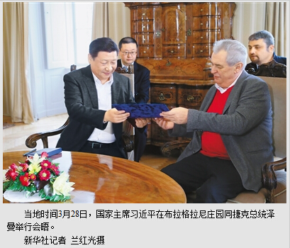 本报布拉格3月28日电 (记者杜尚泽、任彦)当地时间28日,国家主席习近平在布拉格拉尼庄园同捷克总统泽曼举行会晤。