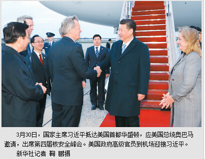 本报华盛顿3月30日电 (记者杜尚泽、王如君、张朋辉)3月30日,国家主席习近平抵达美国首都华盛顿,应美国总统奥巴马邀请,出席第四届核安全峰会。
