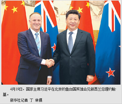 本报北京4月19日电 (记者赵明昊)国家主席习近平19日在钓鱼台国宾馆会见新西兰总理约翰·基。
