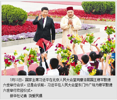 本报北京5月11日电 (记者杨晔、杜一菲)国家主席习近平11日在人民大会堂同摩洛哥国王穆罕默德六世举行会谈,两国元首决定建立以相互尊重、平等互利原则为基础的中摩战略伙伴关系,开启双边关系新篇章。