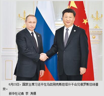 习近平指出,在《中俄睦邻友好合作条约》签署15周年和中俄战略协作伙伴关系建立20周年之际,普京总统即将对中国进行的国事访问具有特别重要的意义。中方愿同俄方一道,弘扬条约确立的世代友好理念,增进两国政治和战略互信,加大相互支持,推动两国发展战略对接和“一带一路”建设同欧亚经济联盟建设对接合作,密切在重大国际和地区事务中协调配合。