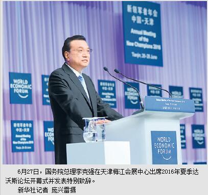本报天津6月27日电 (记者卫庶、吕鸿、杨迅)国务院总理李克强27日上午在天津梅江会展中心出席2016年夏季达沃斯论坛开幕式并发表特别致辞。(全文见第三版)