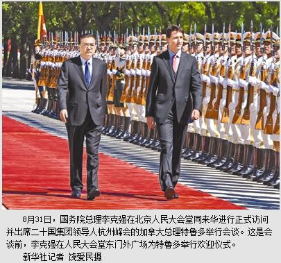 本报北京8月31日电 (记者李伟红)国务院总理李克强31日上午在人民大会堂同来华进行正式访问并出席二十国集团领导人杭州峰会的加拿大总理特鲁多举行会谈。