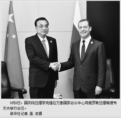 本报万象9月8日电 (记者吴乐珺、张志文)国务院总理李克强当地时间8日上午在万象国家会议中心同俄罗斯总理梅德韦杰夫举行会见。两国总理一致同意继续推进中俄全面战略协作伙伴关系取得新发展,并就共同关心的双边以及国际地区问题交换意见。