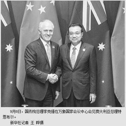 本报万象9月8日电 (记者吴乐珺、张志文)国务院总理李克强当地时间8日上午在万象国家会议中心会见澳大利亚总理特恩布尔。