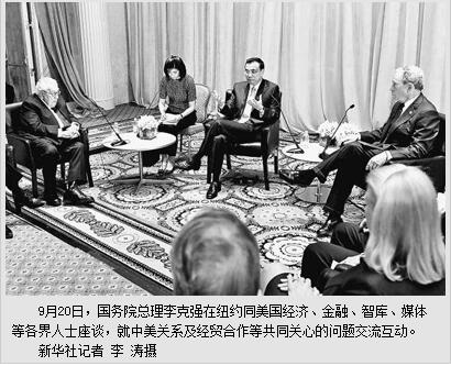 李克强同美国经济金融界、智库、媒体重要人士座谈