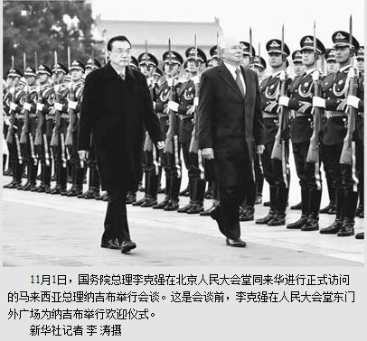 本报北京11月1日电 (记者杜一菲)国务院总理李克强1日下午在人民大会堂同来华进行正式访问的马来西亚总理纳吉布举行会谈。