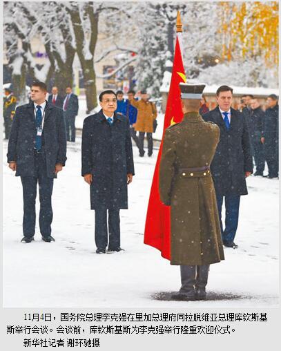 本报里加11月4日电 (记者吴乐珺、管克江)国务院总理李克强当地时间4日上午在里加总理府同拉脱维亚总理库钦斯基斯举行会谈。