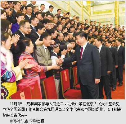 习近平在会见中国记协第九届理事会全体代表和中国新闻奖、长江韬奋奖获奖者代表时强调