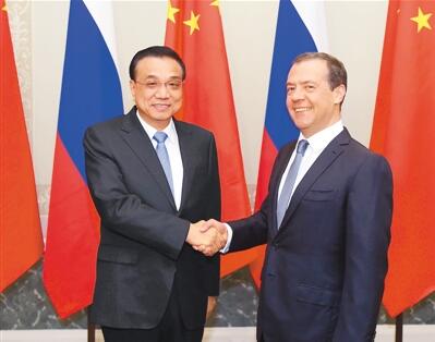 李克强表示,中俄互为最大邻国和全面战略协作伙伴,两国关系持续稳定健康发展,务实合作不断取得新成果。中俄作为安理会常任理事国,在国际事务中保持沟通协调,共同维护联合国宪章宗旨和原则,促进地区乃至世界的和平与稳定。中方愿同俄方共同努力,将“一带一路”倡议同欧亚经济联盟更好衔接,不断提升中俄关系与合作水平,实现互利双赢,造福两国人民。