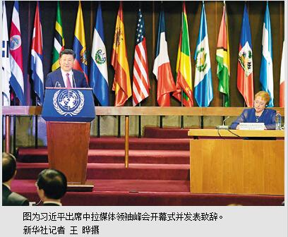 习近平强调,首届中拉媒体领袖峰会正式举办,是中拉媒体交往史上的一次创举,也是一大盛事。“声同则处异而相应,德合则未见而相亲”。媒体交流是中拉关系的重要组成部分。中拉媒体在继承和发展中拉人民友谊方面大有作为。