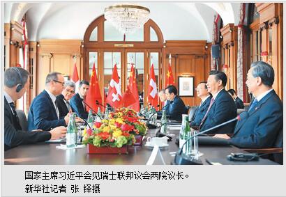 习近平强调,多年来,中国全国人民代表大会同瑞士联邦议会保持着密切交流合作,对促进中瑞关系健康稳定发展发挥了重要作用。积极发展对华关系已经成为瑞士联邦议会各主要党团的主流共识。中方赞赏瑞士联邦议会在中瑞签订自由贸易协定过程中发挥的积极促进作用。两国立法机构应该加强各层面交流,密切在法制建设、反腐败等领域交流合作。