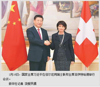 本报伯尔尼1月16日电 (记者杜尚泽、任彦)16日,国家主席习近平在伯尔尼同瑞士联邦主席洛伊特哈德举行会谈。两国元首积极评价中瑞关系,一致同意继续秉承开放包容理念,坚持走合作共赢道路,深化各领域务实合作,推动中瑞关系实现更好发展。瑞士联邦副主席贝尔塞,联邦委员兼财政部长毛雷尔,联邦委员兼外长伯克哈尔特,联邦委员兼经济、教研部长施奈德—阿曼共同参加会谈。