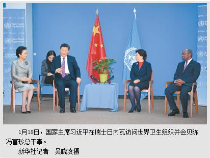 本报瑞士日内瓦1月18日电 (记者杜尚泽、王远)18日,国家主席习近平在日内瓦访问了世界卫生组织并会见陈冯富珍总干事。