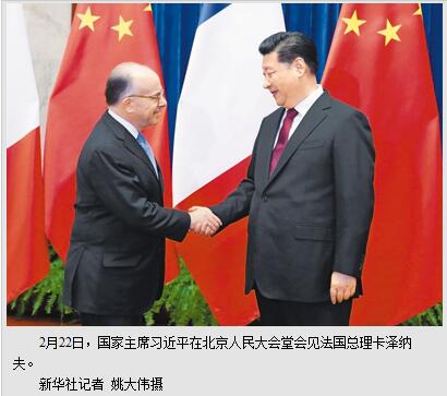 本报北京2月22日电 (记者杨迅)22日,国家主席习近平在人民大会堂会见法国总理卡泽纳夫。