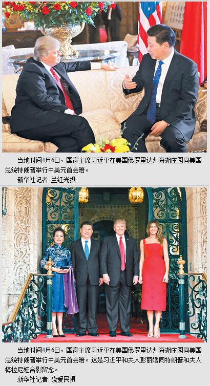 本报美国海湖庄园4月6日电 (记者杜尚泽、章念生、高石)当地时间6日,国家主席习近平在美国佛罗里达州海湖庄园同美国总统特朗普举行中美元首会晤。两国元首进行了深入、友好、长时间的会晤,双方高度评价中美关系取得的历史性进展,同意在新起点上推动中美关系取得更大发展,更好惠及两国人民和各国人民。