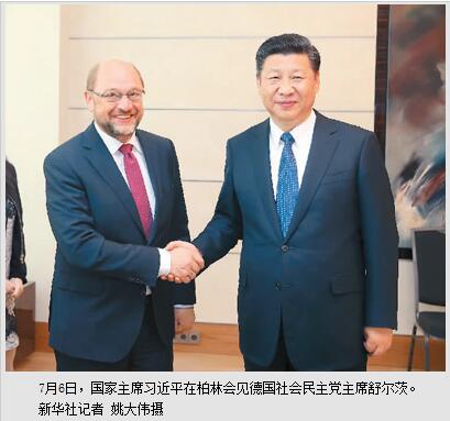 本报柏林7月6日电 (记者杜尚泽、冯雪珺)国家主席习近平6日在柏林会见德国社会民主党主席舒尔茨。