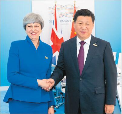 7月7日,国家主席习近平在汉堡会见英国首相特雷莎·梅。